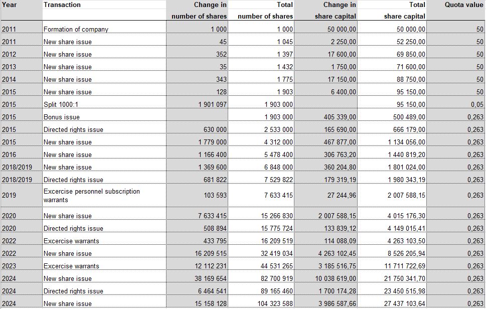 Share capital and quota value in SEK
