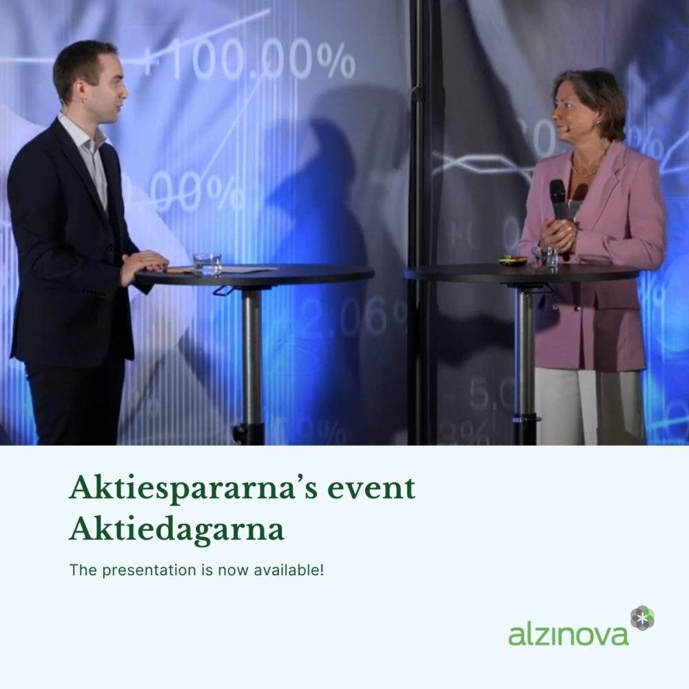 CEO Kristina Torfgård presented Alzinova at Aktiespararnas' event Aktiedagarna.